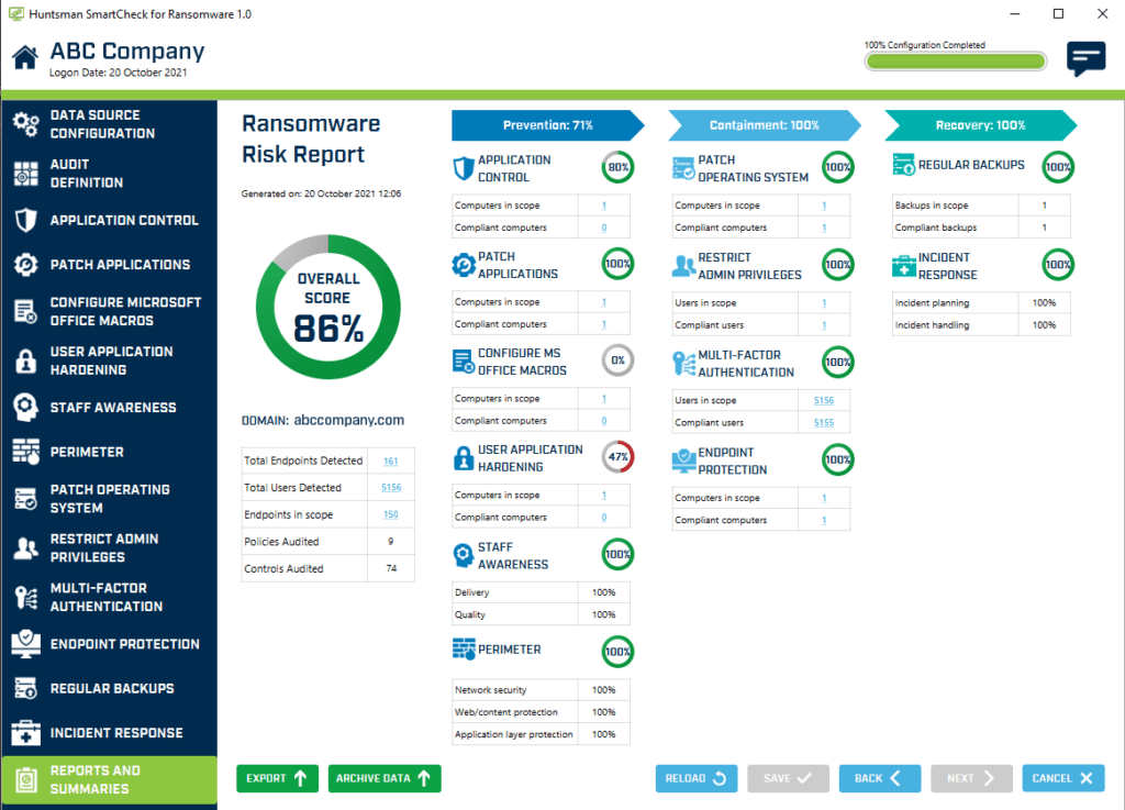 The ACSC advisory also reminds organisations to remain vigilant against ransomware attacks and the importance of good cyber hygiene in those efforts. Again, this has been a major focus of the new Huntsman Security SmartCheck for Ransomware solution which measures and reports on the effectiveness of 12 key security controls to enhance your cyber posture and combat ransomware, one of today’s most prevalent threats.